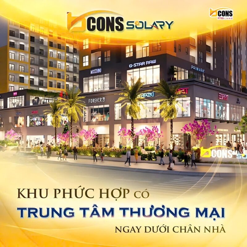 Bcons Solary là dự án khu căn hộ chung cư do tập đoàn chủ đầu tư Bcons phát triển tọa lạc tại đường số 4, Khu công nghiệp Tân Đông Hiệp B, thành phố Dĩ An, tỉnh Bình Dương. Dự án có quy mô 1,8 hecta gồm 4 tòa tháp cao từ 36 đến 38 tầng cung ứng ra thị trường Bình Dương hơn 1800 căn hộ, với thiết kế tỉ mỉ chi tiết từ 1 đến 3 phòng ngủ, phục vụ nhu cầu đa dạng của dân cư.